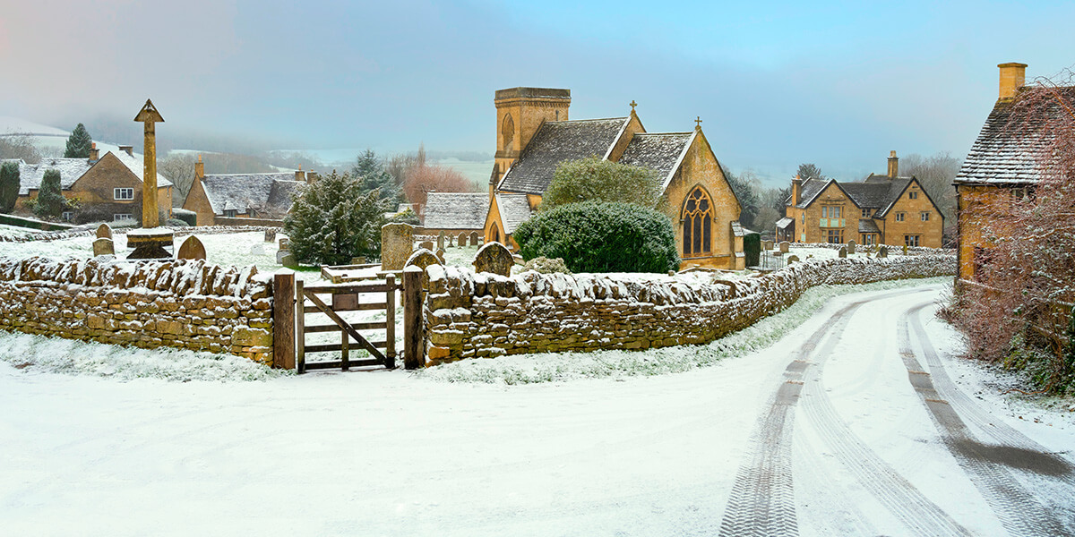 Begin and end your scenic winter drive along the Cotswold Romantic Road in Regency Cheltenham. Head out on the A40 to pick up the B4632 for Cleeve Hill. The hill stands at the highest point in the Cotswolds, at 330 metres or 1,080 feet. You can enjoy panoramic views of the Vale of Evesham on a clear winter’s day.